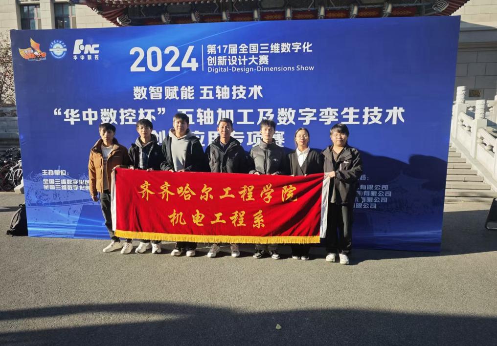 近日,第 17 届全国三维数字化创新设计大赛“华中数控杯”五轴加工及数字孪生技术创新应用专项赛(黑龙江赛区)传来喜讯,我校机械设计制造及其自动化专业学生胡奕潇、张洋、陈会林荣获特等奖(晋级国赛);刘展、王重阳、高月童团队荣获二等奖;何其润、刘麟松、尹云飞团队荣获二等奖;刘正杨、董思彤、周帅团队荣获二等奖的佳绩。本次比赛于10月18日在哈尔滨工程大学举行,由全国三维数字化创新设计大赛组委会、全国三维数...
