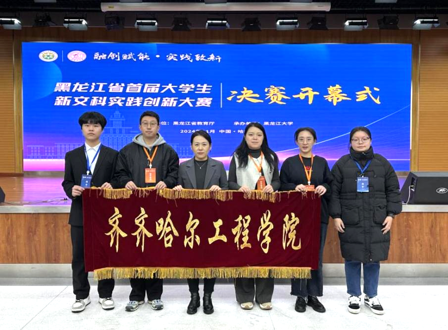 近日,黑龙江省首届大学生新文科实践创新大赛决赛在黑龙江大学举行,来自全省各高校共计584组选手同台竞技。最终,我校共计12组项目脱颖而出,荣获金奖1项,银奖4项,铜奖7项,其中“龙江非遗地图APP”“指尖上的普法之星—小程序助力乡村振兴的法律卫士”“绿意互联—农村智慧监管系统”“苏绣凝香”4组项目成功进入全国总决赛。本次大赛由黑龙江省教育厅组织,以“融创赋能 实践致新”为主题,是面向全省本科高校在校大学生举...