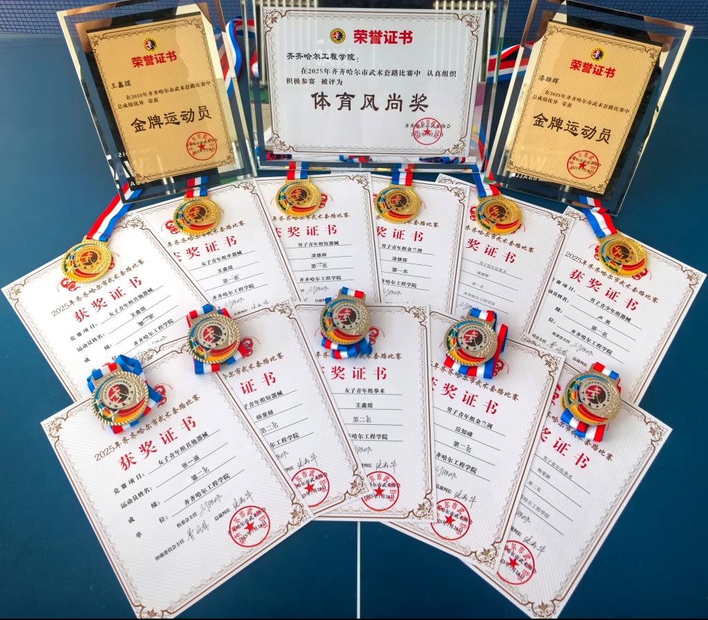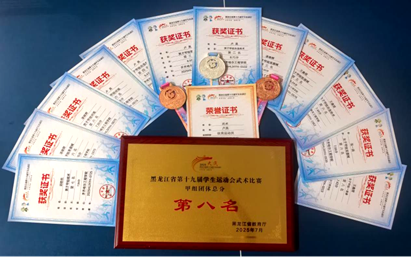 7月26日,齐齐哈尔市“洋河海之蓝”武术套路比赛在齐齐哈尔市体育馆圆满落幕。我校7名运动员组成的参赛队伍在教练员韩淑梅的带领下在比赛中,勇夺6金5银,信息学院王鑫煜和机电学院漆雄辉两名同学荣获“金牌运动员”称号,武术团队荣获“道德风尚奖”。本次比赛吸引了来自齐齐哈尔市及周边地区的众多武术爱好者,参赛选手涵盖各个年龄段,充分展现了武术的广泛影响力和深厚群众基础。比赛中,我校学子沉着冷静、发挥稳定,在多...