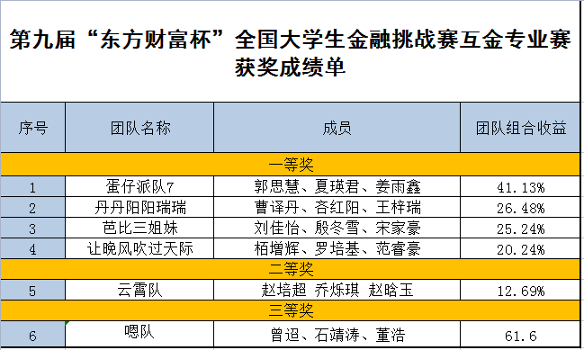 7月10日,第九届“东方财富杯”全国大学生金融挑战赛黑龙江赛区选拔赛圆满结束。我校互联网金融专业参赛队伍最终获得省赛一等奖4项、二等奖1项、三等奖1项的优异成绩,参赛成绩创造历史。 “东方财富杯”全国大学生金...