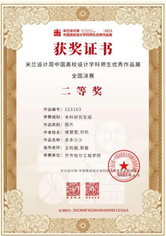 近日,2023年“米兰设计周第七届中国高校设计学科师生优秀作品展”国赛评审落下帷幕。信息工程系视觉传达设计专业2020级侯慧莹、刘帆等同学分获本科研究生组全国决赛二三等奖,2020级郑程玉同学等获得省级奖8项。米兰设计周作为56项学科竞赛之一,是由中国教育国际交流协会、中国高等教育学会发起的一项具有导向性、示范性的全国竞赛活动。我校信息工程系视觉传达设计专业2020级侯慧莹同学的平面类作品《多多少少》获本科研究...