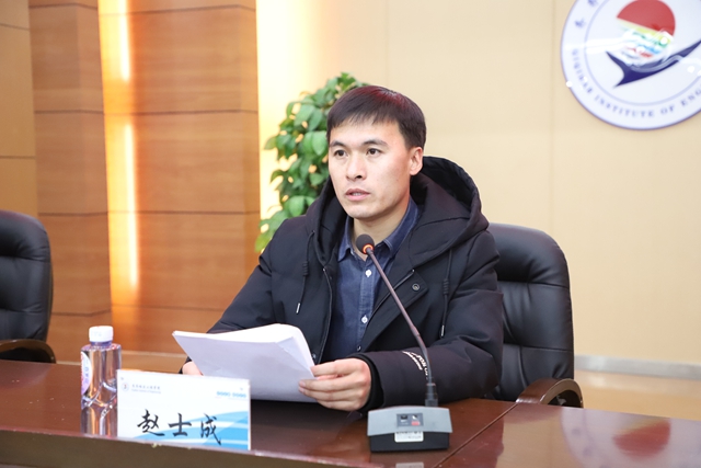 按照省委、市委关于做好第二批主题教育评估工作的部署和要求,12月30日下午,市委主题教育第十三巡回指导组成员赵士成、贾伟来到我校开展主题教育随机测评工作。此项工作在图书馆601报告厅进行,参加测评会的有校领导、中层干部、“两代表一委员”、教学科研骨干、师生党员和职工代表近两百人。测评会由赵士成主持。