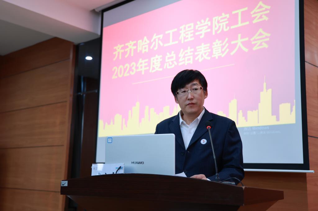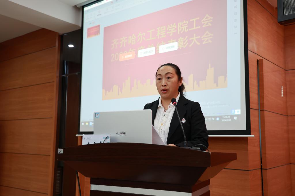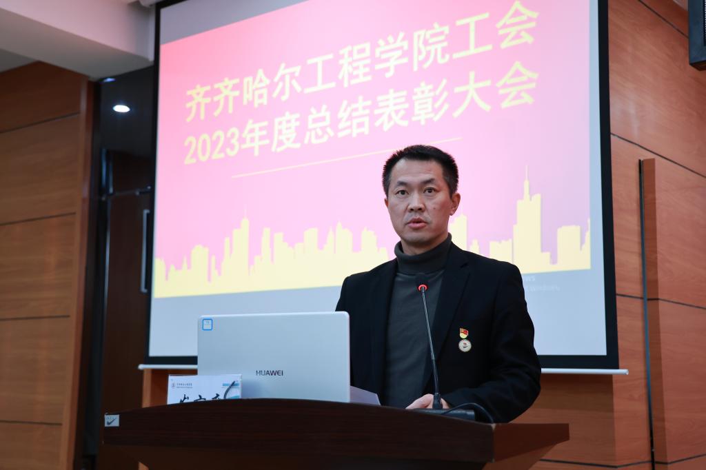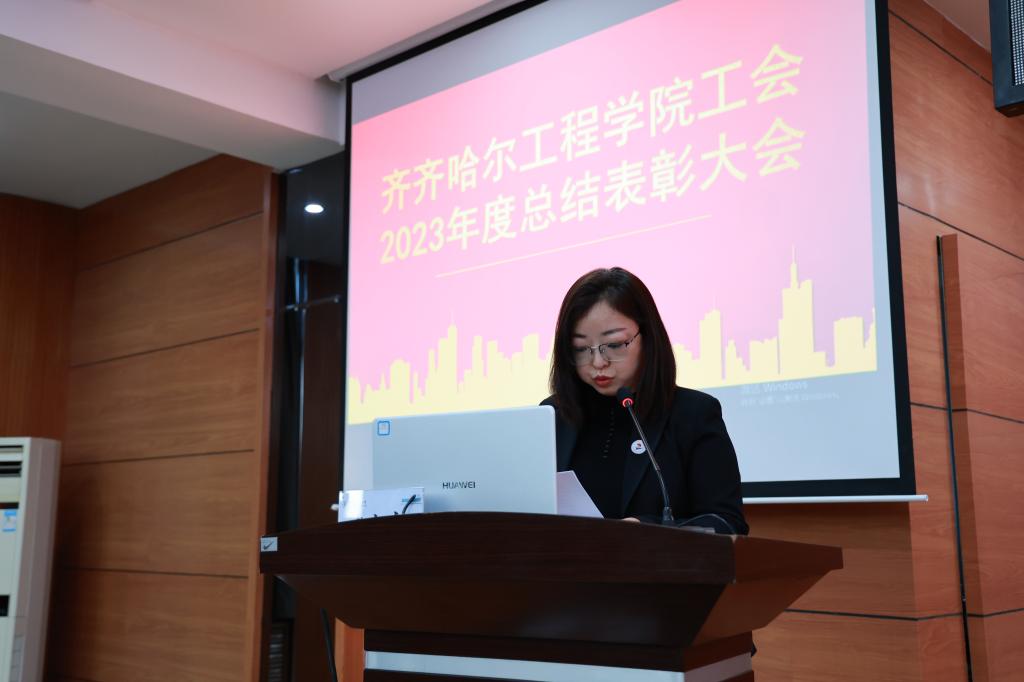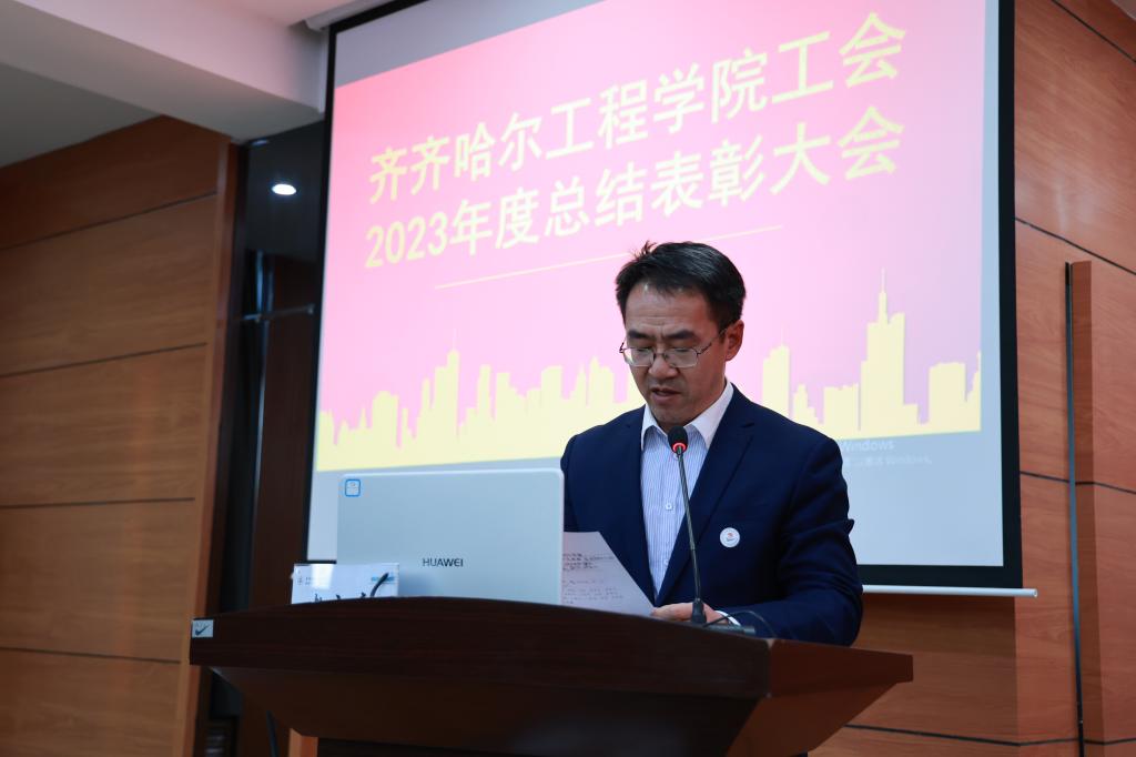 学校工会委员郑洪波宣读《关于表彰齐齐哈尔工程学院工会2023年度星级基层工会和优秀个人的决定》。