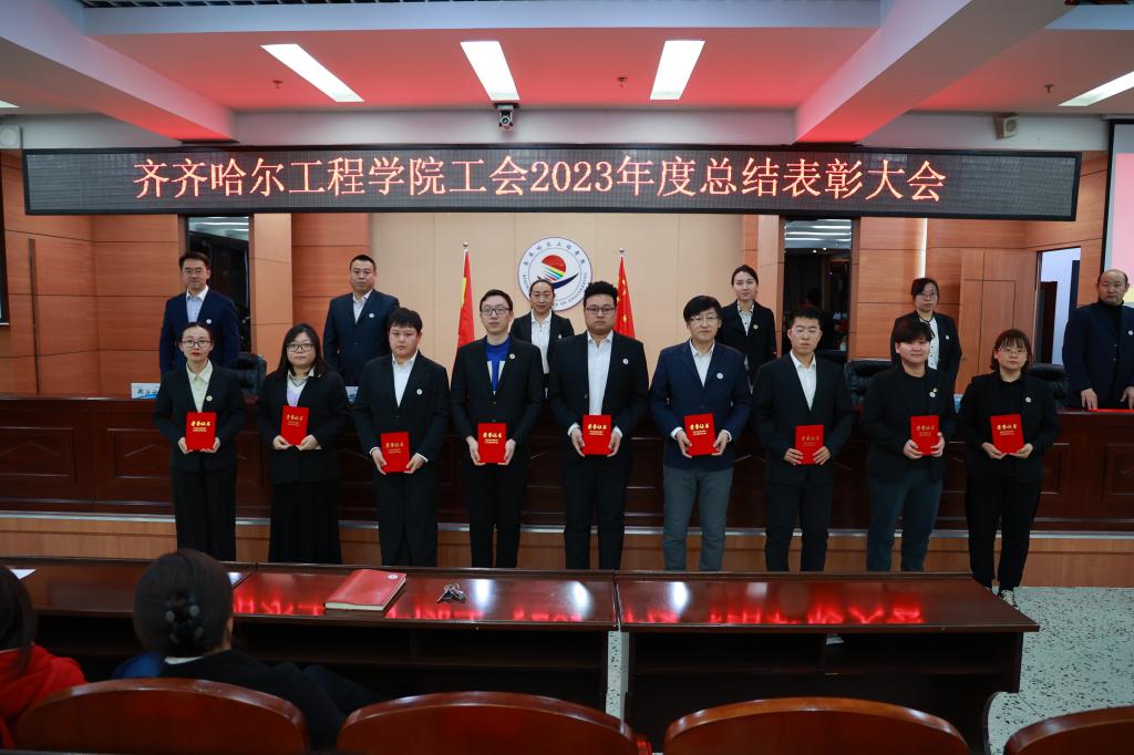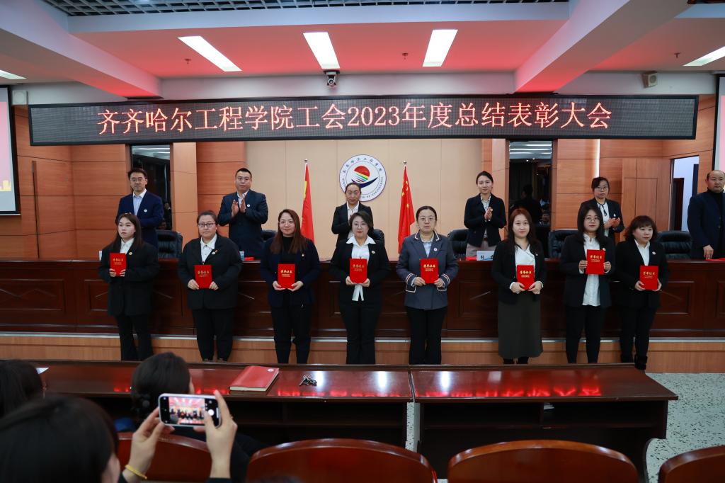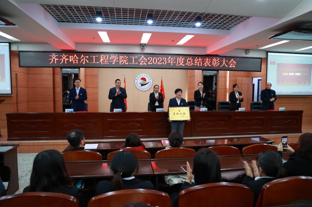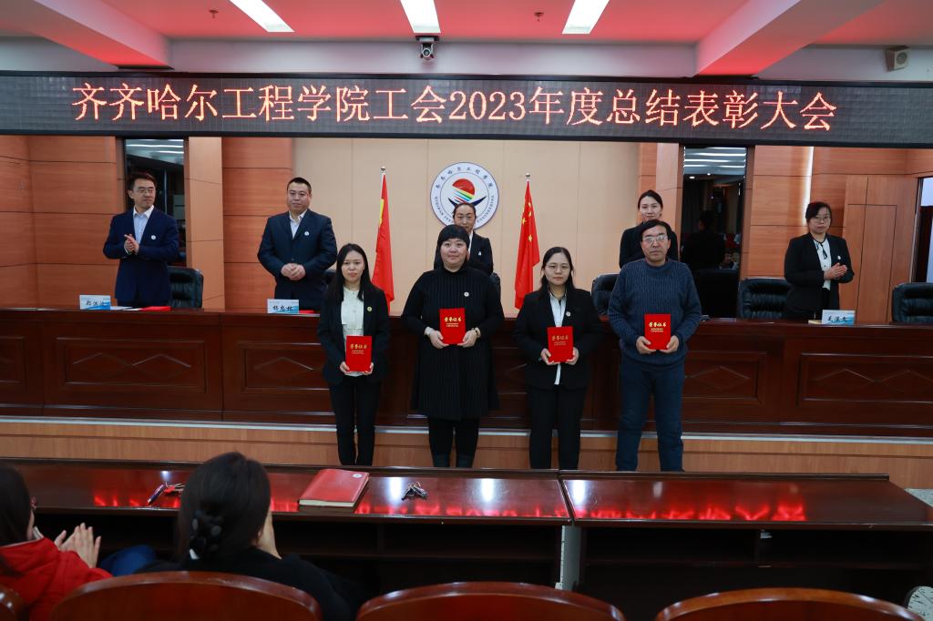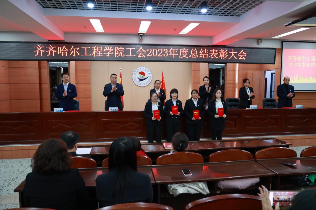 学校工会委员郑洪波宣读《关于表彰齐齐哈尔工程学院工会2023年度星级基层工会和优秀个人的决定》。