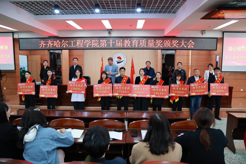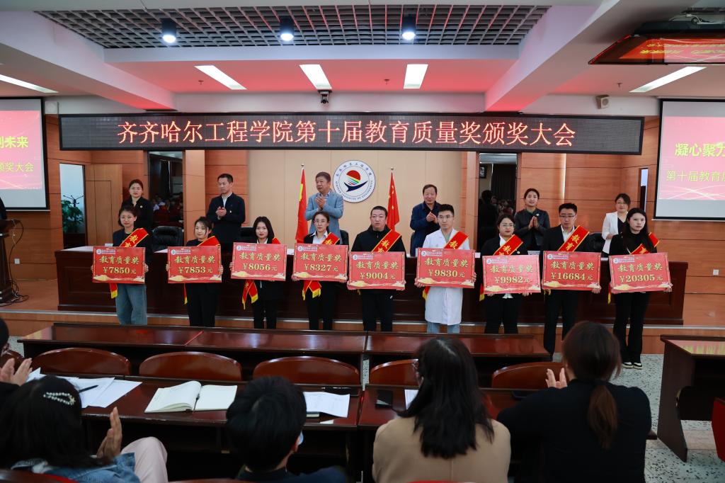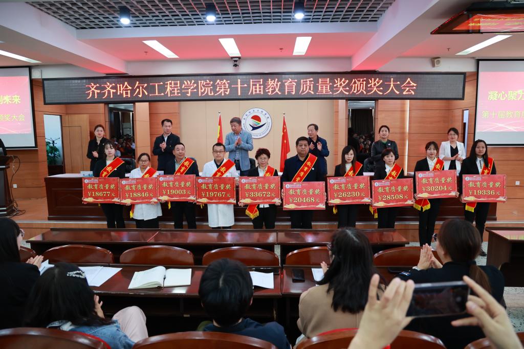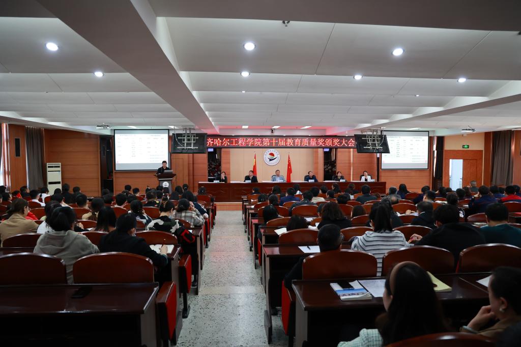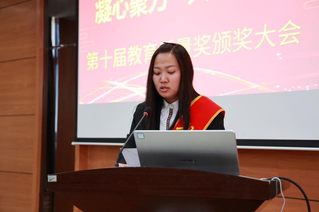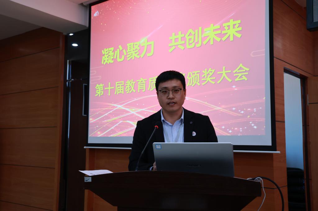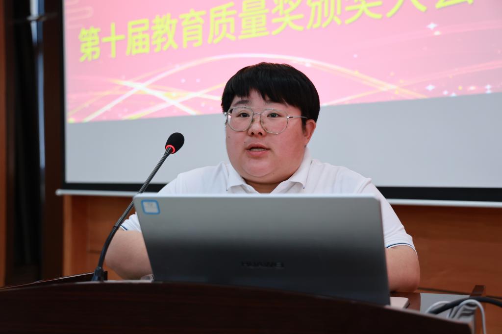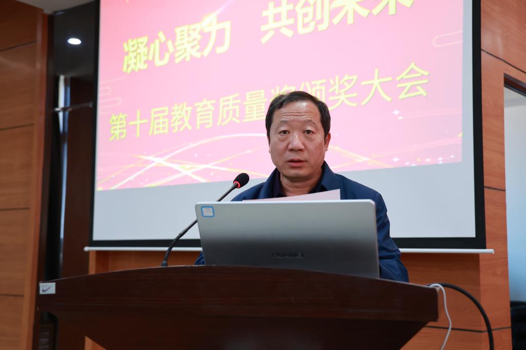 院长曹然彬宣读《齐齐哈尔工程学院关于颁发第十届教育质量奖的决定》。