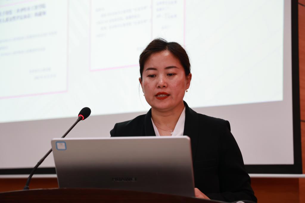 教务处副处长李文禹作2023——2024学年第一学期教学质量奖评定情况汇报。围绕教学质量奖评定总体情况、教学质量奖评定介绍、2023——2024学年教学质量奖评定导向三个方面进行说明。提出,专任教师要持续关注教学成果产出,提质增效;持续课程数智化建设,打造特色;年终质量奖关注教研成果转化,建设教学资源库。教学团队要统筹专业系统建设,关注专项评估;靶向审核评估要点,注重成果导向。