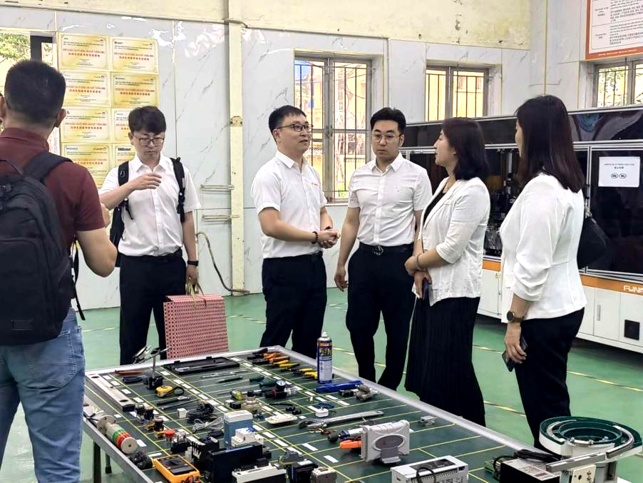 机电工程系副主任敖林喆以一门课程为例进行“FT(课程)”展示。考察团成员与参会各方就越南属地化人才培养、课程培训等事宜进行了深入交流。