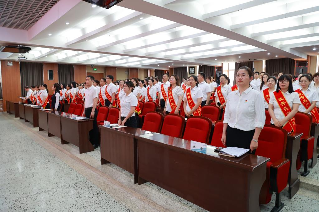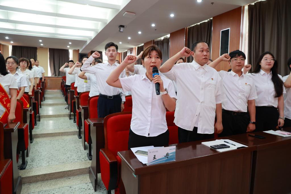 校党委委员、党委组织部部长王丹带领全体党员重温入党誓词,党员们举起右拳,庄严宣誓,表达了对党的忠诚和为共产主义事业奋斗终身的决心。
