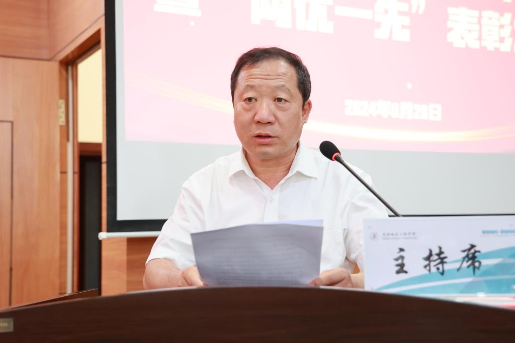 党委副书记、常务副院长陈景鑫同志宣读《关于表彰优秀共产党员、优秀党务工作者和先进基层党组织的决定》,授予刘贤鹏等41名同志“优秀共产党员”称号、授予张磊等8名同志“优秀党务工作者”称号、授予建筑工程系党总支等11个党组织“先进基层党组织”称号。