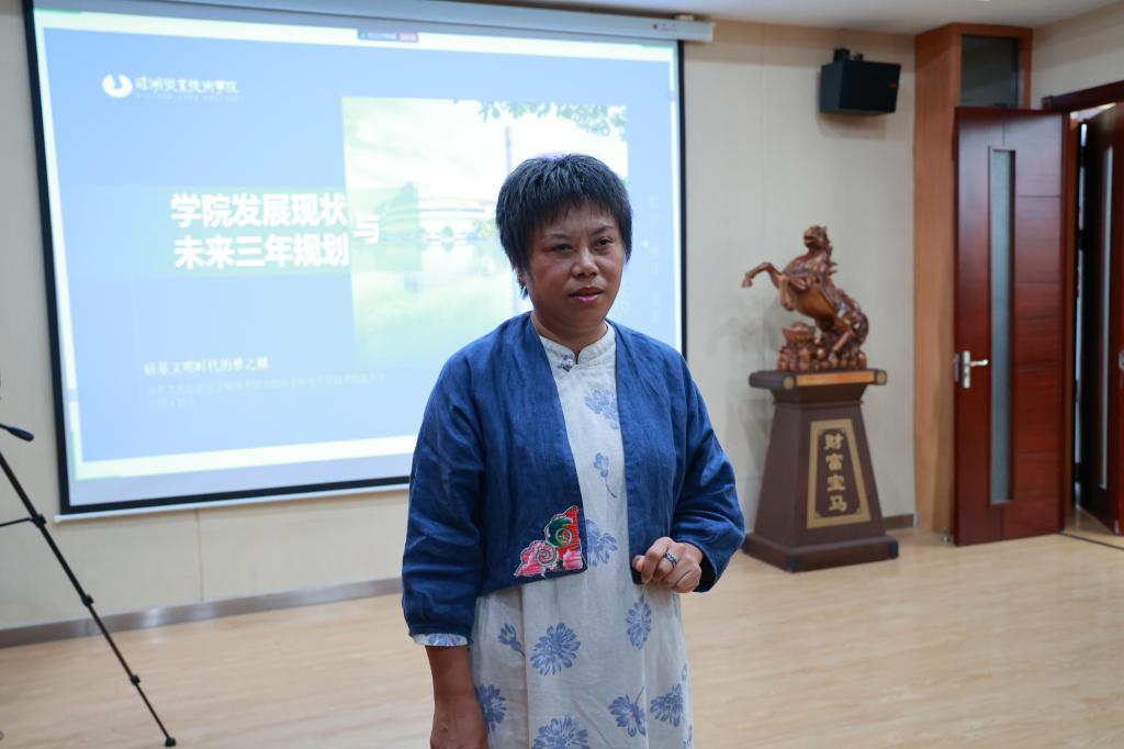 史宝凤对学校的热情接待以及长期给予的支持和指导表示感谢,她表示,此次是硅湖职业技术学院第四次来校,每次来校都有不同的感受,收获满满。目前,硅湖职业技术学院正处于转型发展的关键时期,希望通过此次考察交流,学习宝贵经验,开拓办学的新思路、新方案、新理念,提升办学水平,进一步加强两校的交流与合作,共同开创事业高质量发展新局面。