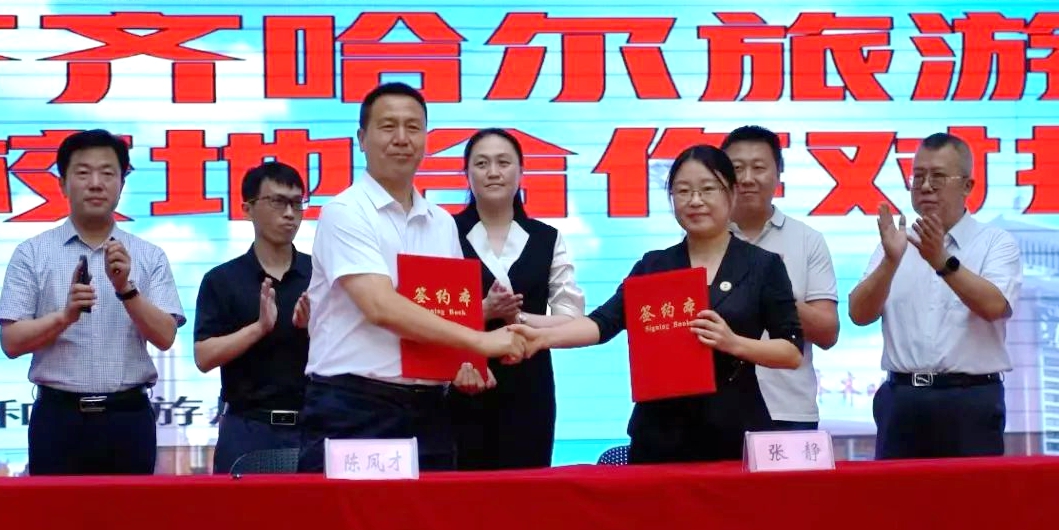 会上,陈凤才代表齐齐哈尔市文化广电和旅游局与张静签署了《齐齐哈尔市文化广电和旅游局、齐齐哈尔工程学院校地合作框架协议》,双方将在打造文旅行业产教融合共同体、建设数字鹤城服务平台、制定互培互聘的人才培养机制、组建产学研技术研发中心、科技赋能营造良好发展环境5个方面进行深入的合作。