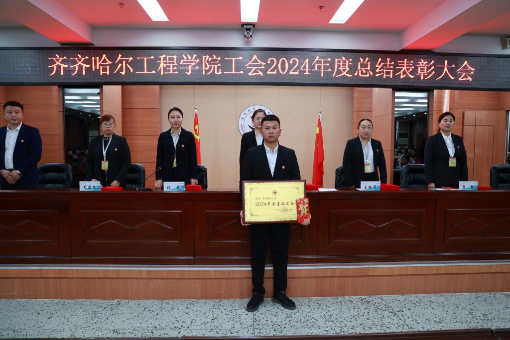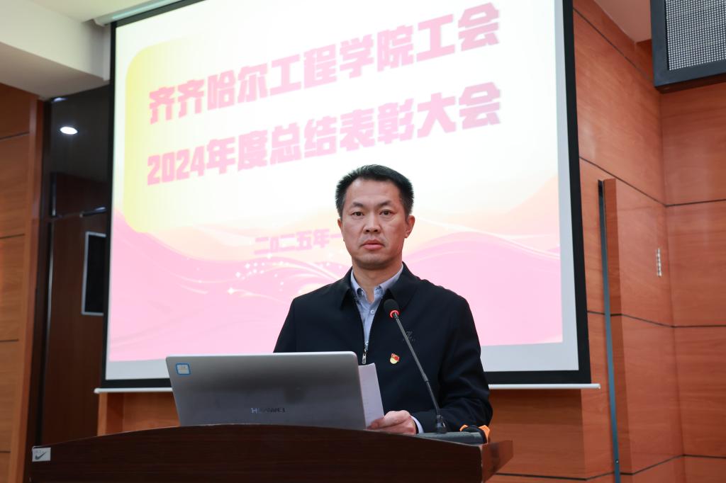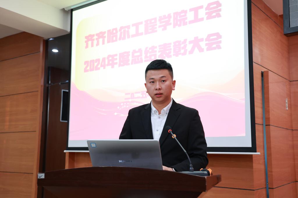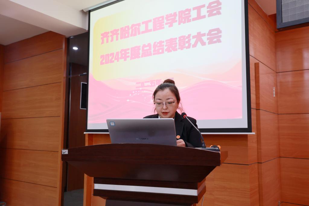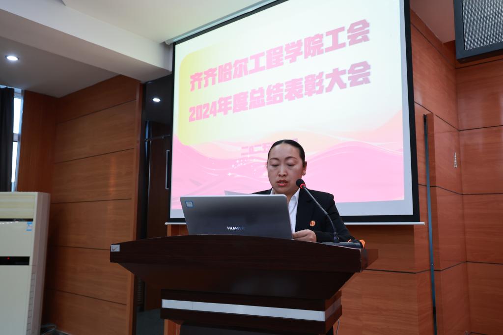 学校工会副主席王丽萍宣读《关于表彰齐齐哈尔工程学院工会2024年度星级基层工会和优秀个人的决定》。