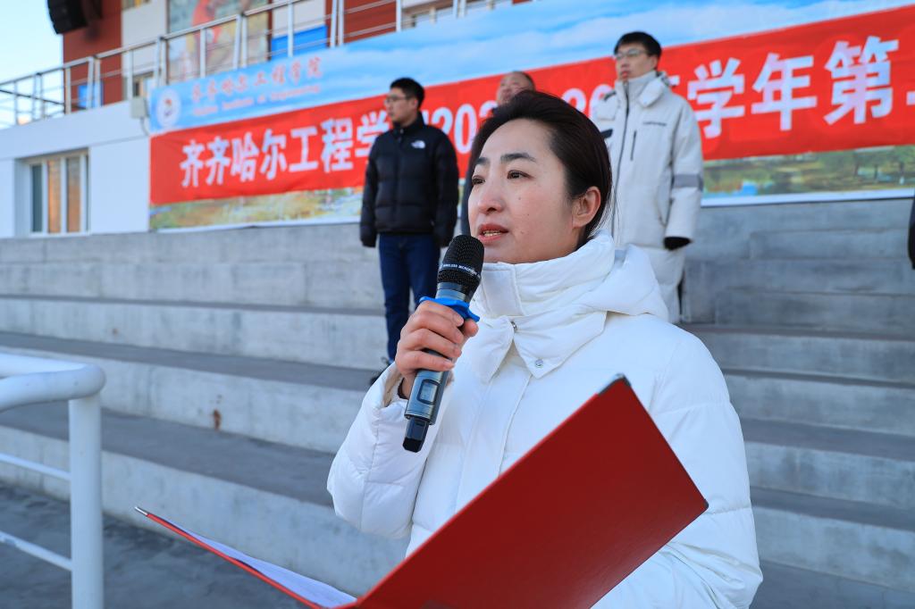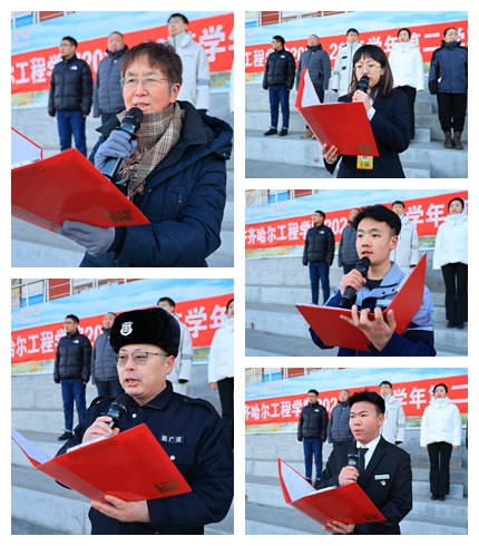 校医院教师信萍对校园常见传染病知识进行宣传,并对常见传染病类别、典型传染病及传染病预防措施进行讲解。她希望全体学生加强锻炼身体,合理饮食,预防春季传染疾病,做自身健康的守护者。 赵广这强调校园安全的重要性,分享校园治安、交通安全、消防安全和防诈知识等知识,提高自身安全、日常生活安全等应对能力,提醒师生遵守校园秩序,持续推进平安校园建设。 学生代表张利民分享自己对新学期的展望和计划。他提到,要以“主人翁”的姿态迎接学校本科教育教学审核评估,以实际行动擦亮校园名片;以“奋斗者”精神投身学风建设,锤炼过硬本领;以“领跑者”的担当传递青春能量,争做时代标杆。 生涯导师代表毛一姝在发言中表达了对学生的深切关怀和期望。她鼓励同学们迎接新变化,掌握新技术,利用AI等工具赋能学习,理性看待AI时代带来的挑战与机遇。 校学生会执行主席许瑞宝宣读新学期倡议,号召全体学生树立明确学习目标,制定合理的学习计划,积极参与体育锻炼和社会实践,提升综合素质和社会责任感。