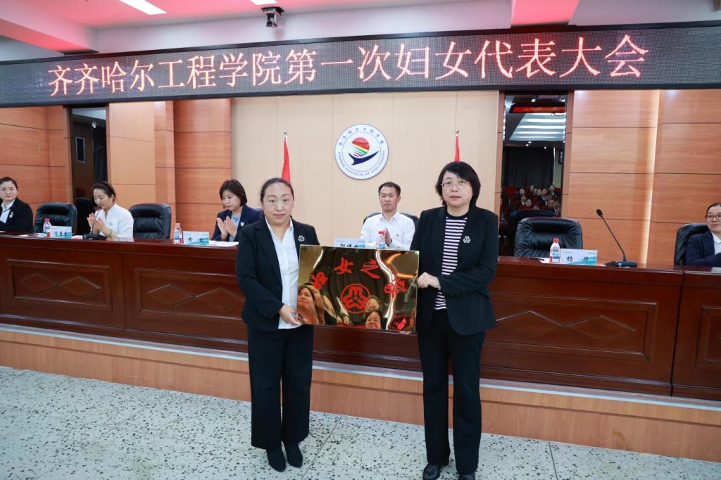 选举结束后,杨华为齐齐哈尔工程学院妇联“妇女之家”授牌。