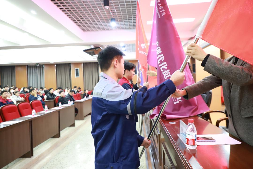 随后,在激昂的乐曲中,学校领导为各学院社会实践团队代表郑重授旗。一面面鲜红的旗帜交接传递,象征着责任与使命的庄严托付。