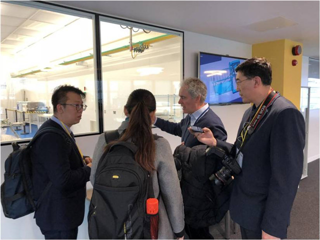 下午,考察团一行到访牛津市RAL Space产学研中心,在听取中心负责人Robert Elliot关于该中心基本情况及其研究项目的介绍后,由中心的合作公司ESA BIC股东赖教授带领,参观了中心的卫星检测项目实验中心。通过与赖教授的沟通,考察团一行对RAL Space产学研中心有了更加深入地了解,理事长曹勇安教授还就课程建设、科技产业园、创新研发等方面的问题与赖教授进行了探讨。