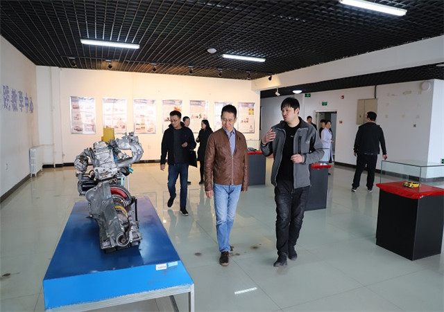 王玉彪董事长一行由学院院长曹然彬、交通工程系主任张莹、汽车服务工程专业袁双宏专业长陪同,参观了汽车大楼教学中心,现场听取有关应用型人才培养情况的介绍。双方领导认为,校企精诚合作是人才培养的重要方式,共建实习基地对校企双方具有重要意义。一方面,企业可以为学生提供真实工作环境,为高水平应用型人才培养提供有力支撑;另一方面,学校可以为企业输送人才,助力企业发展。