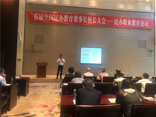 中国民办教育协会会长王佐书主持大会,教育部思想政治工作司张文斌副司长作《不忘初心、牢记使命、展望未来》主旨报告。学院理事长曹勇安 、教务处处长白雪与全国800余所民办学校理事长、校长参加大会。