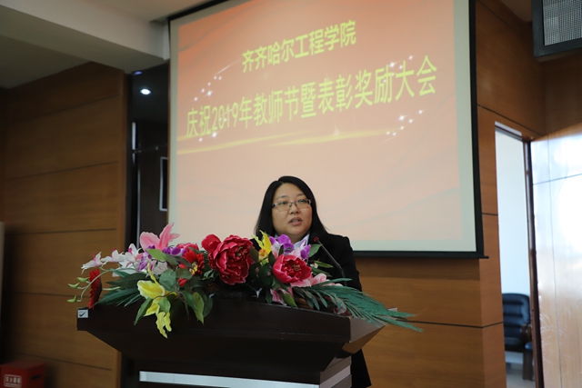 学院党委书记李敏义首先在会上宣读《关于表彰全省优秀教师和优秀教育工作者的决定》《关于表彰2019年度全省师德先进集体和师德先进个人的决定》《齐齐哈尔工程学院关于表彰奖励优秀教师、优秀教育工作者、师德先进集体和先进个人的决定》。