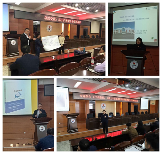 学院理事长曹勇安教授首先作《基于产教融合的课程建设》专题报告,以《教育部关于深化本科教育教学改革全面提高人才培养质量的意见》《教育部关于一流本科课程建设的实施意见》解读为切入点,认为把立德树人成效作为检验高校一切工作的根本标准,必须把教学改革成果落实到课程建设上。以齐齐哈尔工程学院课改实践为例,阐述了应用型课程建设的基本内涵、评价标准等。