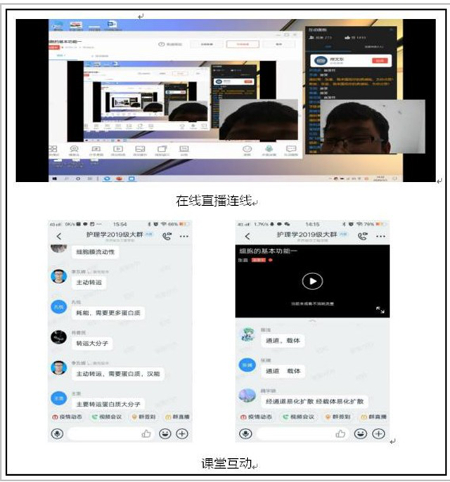 2、课中与学生“共舞”。采用钉钉直播屏幕共享的方式进行直播教学,其中穿插着观看慕课视频,教师利用钉钉白板做知识框架的总结,课堂连麦,互动面板答题,投票等教学环节,带领学生跟着教师的节奏,从而实现教学目标。同时在授课过程中不忘培养学生对专业的深入认知,通过我校护理学专业的毕业生现在各地一线对抗疫情的故事,让学生明白医学生的责任感和使命感。课程思政实例:如护理学 2017 届毕业生高鑫支援武汉抗击疫情一线。