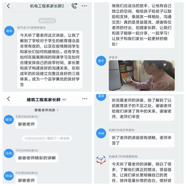 此次讲座使学生家长们意犹未尽,更引发了家长们的共鸣与思考,纷纷表示受益匪浅,学习到了许多实用的亲子沟通技巧,解开了很多困惑,感谢学校为家长开设的云课堂,要积极与学校携手共育。