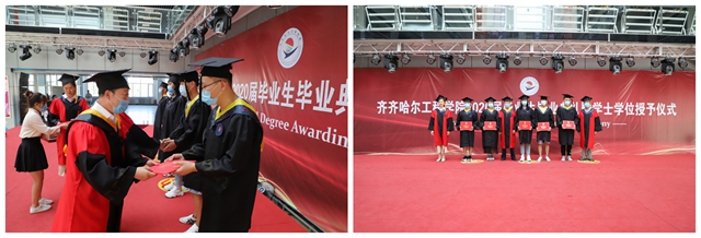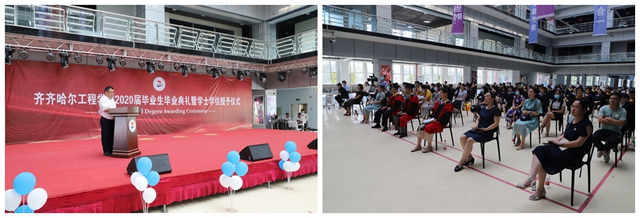 张振笋副院长宣读《关于表彰齐齐哈尔工程学院2020届“优秀毕业生”的决定》,机电工程系刘欢等61名毕业生被授予2020届“优秀毕业生”荣誉称号。