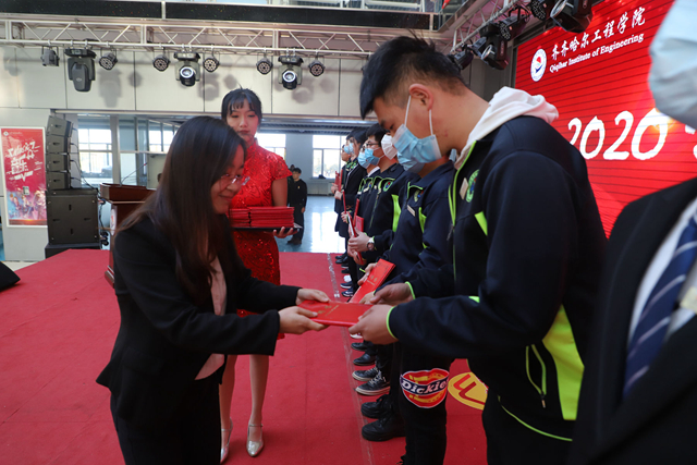 仪式上,学生发展中心负责人康静宣读《齐齐哈尔工程学院关于聘任2020级学长的决定》,各系主任与学生工作副主任分别为受聘学长颁发聘书。