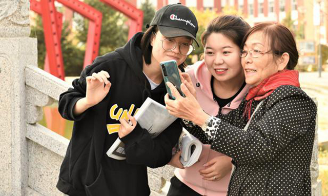 市新闻传媒中心新闻采访部高级摄影记者宋燕军说:“校园秋景美如画,师生都是画中人。看到这些孩子们在这样的校园里生活,觉得他们挺幸福的!”