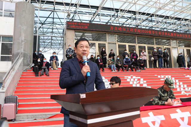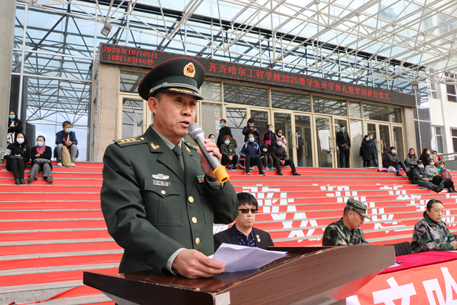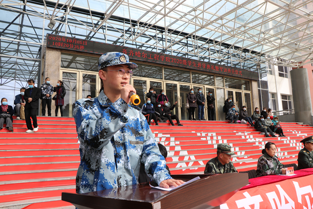 齐齐哈尔市龙沙区武装部政委尚晓伟在讲话中指出:大学生军训是贯彻落实《中华人民共和国国防教育法》《兵役法》等有关规定的重要体现,是大学生在校期间履行兵役义务、理解国防教育的基本形式,也是大学生素质拓展的一个有效途径。长期以来,齐齐哈尔工程学院坚持把军训作为新生入学的必修课,强化了学生的国防观念,提高了学生的综合素质。他激励同学们:宝剑锋从磨砺出,梅花香自苦寒来;万事开头难,起步始为艰。这次军训,是同学们充满期待的大学生活第一步。要认识到,军训是苦的,收获是甜的,艰苦的磨练是人生的宝贵财富。相信你们一定会像军人一样炼就铁骨铮铮、硬气朗朗,以良好的精神面貌和坚韧的意志品质续写大学生活的别样精彩。