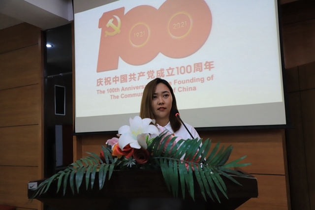 学生发展中心教师李玉焕代表新党员发言,表示加入党组织是新生命的开始,也是人生中新的起点,必将牢记入党誓词,铭记向党和人民许下的郑重承诺,为党和人民的教育事业奋斗终身。