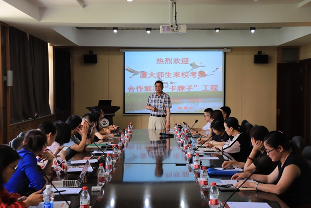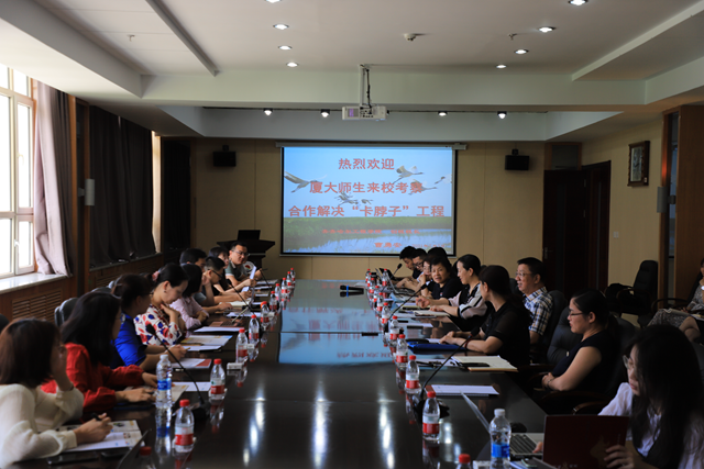 7月3日,厦门大学教育研究院党委书记刘振天、副院长覃红霞率领博士生调研团一行22人莅临我校,围绕我校特色应用型课程建设开始为期一周的调研工作,调研采取调查问卷、访谈、座谈、参观、查阅材料等形式,对我校课程建设工作进行了全面的考察。