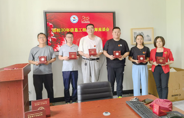 管理工程系全体教师在2#2209会议室召开“创校30年管理工程系教师座谈会”,由系主任陈景鑫为工作10年以上教工颁发银质纪念章。
