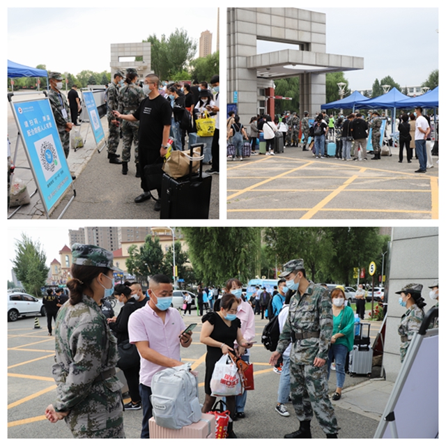 来自祖国各地的新大学生们分别从齐齐哈尔南站、齐齐哈尔站或三家子机场,乘坐学校安排的大 巴车来到校园门前,经过“一测、二查、三检、四住”的流程。即测体温、查验行程、检测、公寓报到,有序进入校园。