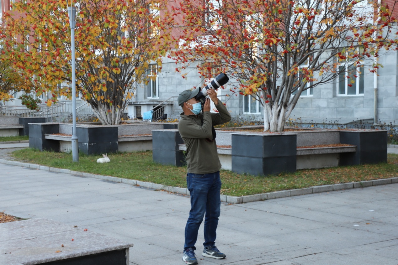 第一次参加校园秋景拍摄活动的新华社、中新社签约摄影师许兴业兴奋地说:“到处都是景,到处都有美,而到处的美景都有独特的韵味,需要细心体会,琢磨着拍。”