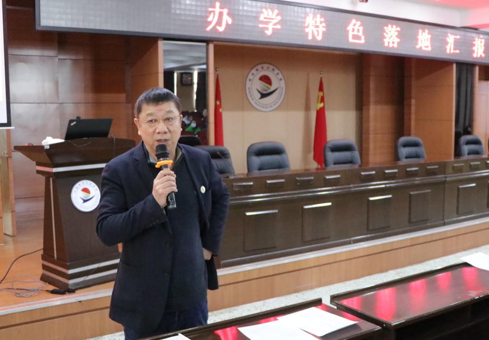 理事长曹勇安首先进行“导语”讲述,关于开展汇报活动的目标,谈及开课说明、教师层次、师生互动;关于人才培养方案,谈及学生就业、创办子弟学校;关于学习同行的经验总结,谈及创业、兴业与成熟三阶段的划分,明晰今后如何做的思考。