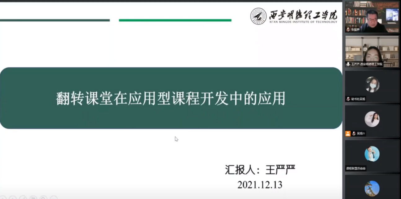 西安明德理工学院王严严老师以《翻转课堂在应用型课程开发中的应用》为题进行分享,认为课程质量是人才培养质量的关键要素,而三级矩阵是非常有效的操作工具;从课程四要素出发,以三级矩阵为抓手,优化课程内容,同时结合学情分析课程实施,强调了课点在课程重组中的重要作用。