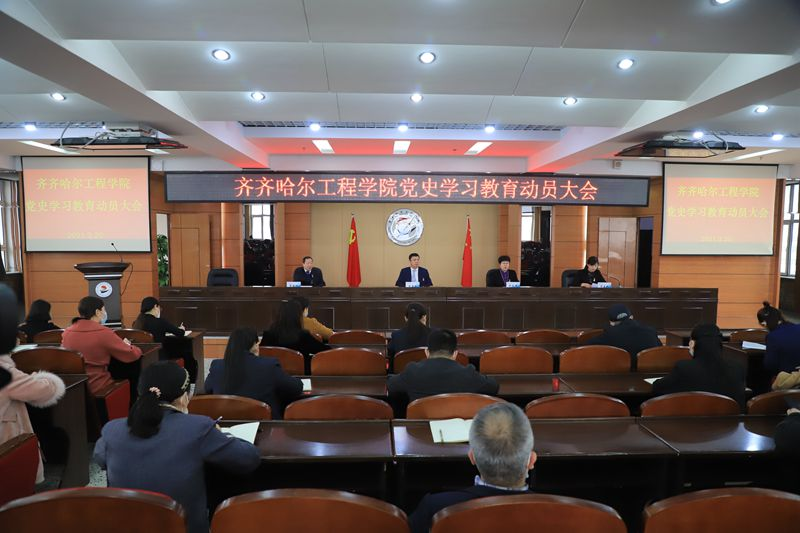 会上宣读了《中共齐齐哈尔工程学院委员会关于开展党史学习教育的实施方案》,方案要求要深刻领会和把握党史学习教育的重大意义、目标要求、重点任务、工作安排,开辟我校教育事业发展新格局。