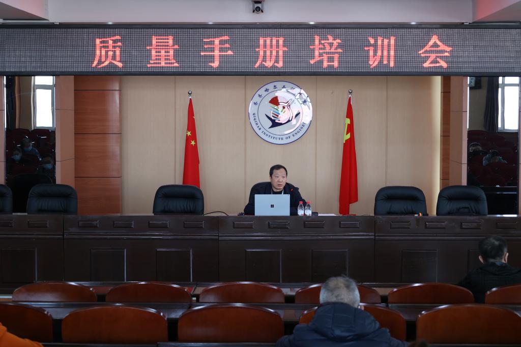 院长曹然彬以《齐齐哈尔工程学院质量手册(B/0版)》解读为主线,带领全校在温习基本概念的基础上,重点讲述质量手册的构成,强调质量手册的核心,讲授配套的质量手册大纲的使用方法。曹院长强调,学校质量文化建设不是外部强加要求,而是学校自主追求,需要“内外结合,上下联动”,并最终落到内部、落到底部,内化为每个人的价值追求,外化为每个人的自觉行为。