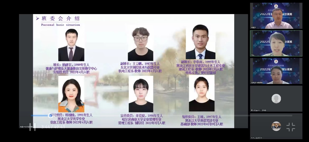 7月17日晚,学校2022年度新教师培训班开班仪式在线召开,副院长张振笋、教师发展中心主任冯洁、副主任李文禹出席,124名新教师参加。