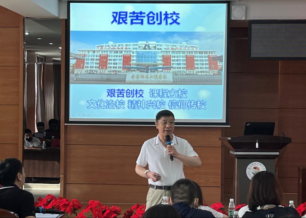 理事长曹勇安结合建校31年的发展历程,从艰苦创校、课程立校、文化治校、精神兴校、信仰传校几方面出发,进行阐述,为新教师带来精彩的开班第一课。新教师更直观地感受到了学校的办学理念和办学特色。曹理事长指出,教育是一门永恒的艺术,要以学生为中心,着重培养学生的“三五”能力。希望新教师能够在此次培训中得到锻炼与成长。
