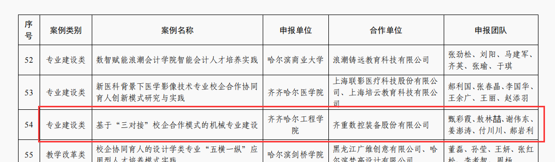 我校机电工程系机械设计制造及其自动化专业多年来在产教融合方面积极探索,具有良好的校企合作基础,按照学校教务处要求,机械专业组成团队积极申报,团队成员有机电工程系教学副主任甄彩霞、机械专业负责人敖林喆、机械专业教师谢伟东、郝岩利、付川川,确定案例名称为“基于‘三对接’校企合作模式的机械专业建设”。历时3个月,于2021年12月申报成功。
