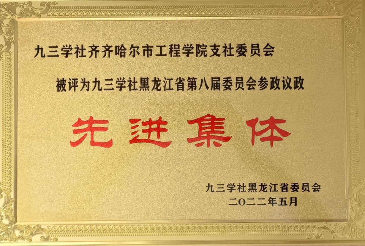 九三学社齐齐哈尔工程学院支社委员会被评为“九三学社黑龙江省第八届委员会参政议政先进集体”。