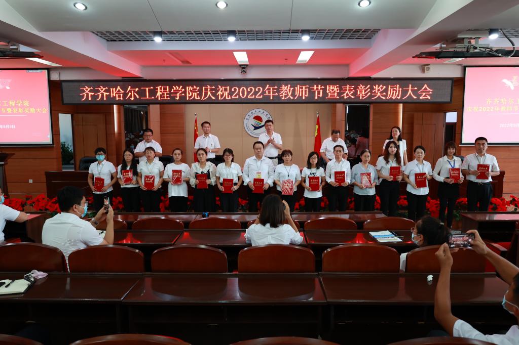 9月9日下午,第38个教师节来临之际,学校举行庆祝2022年教师节暨表彰奖励大会,总结教育工作成绩,表彰先进集体和个人。校领导曹勇安、曹然彬、郭伟东、姜岩、张振笋、白雪,以及全体干部、获奖教师和新教师代表在图书馆601报告厅主会场参会,职能部门、思政教学部、继续教育部和其他新教师分别在图书馆501、101分会场参会,其余部门自设分会场线上参会。
