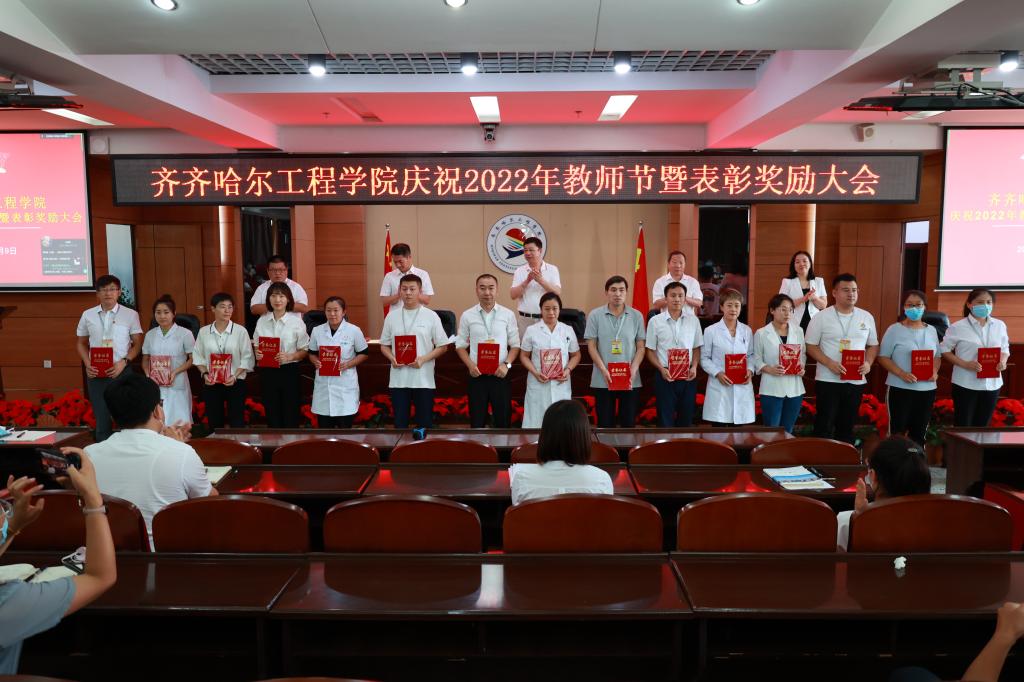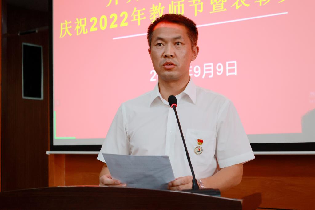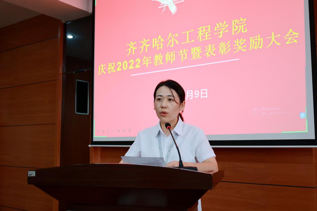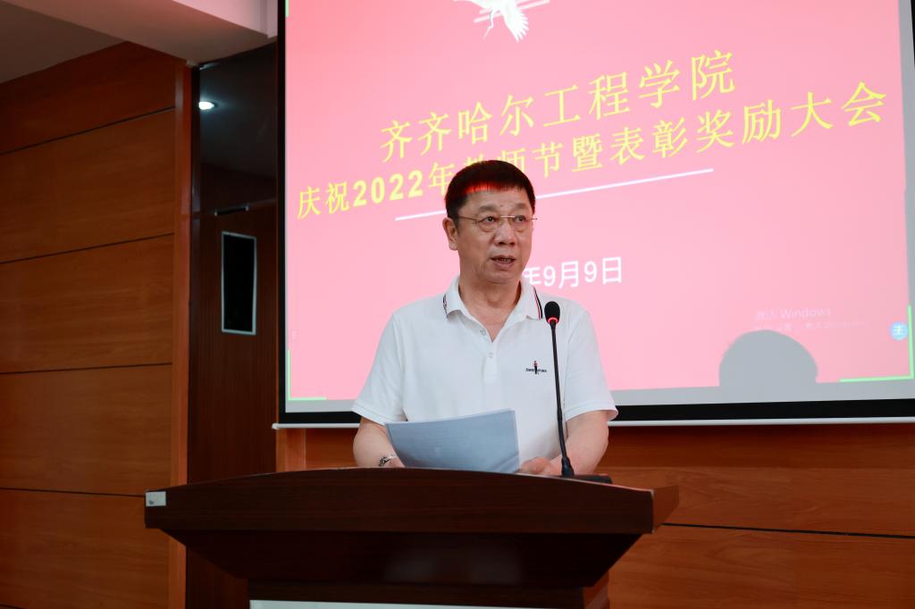 党委书记郭伟东宣读《齐齐哈尔工程学院关于表彰奖励优秀教师、优秀教育工作者、师德先进集体、师德先进个人的决定》。