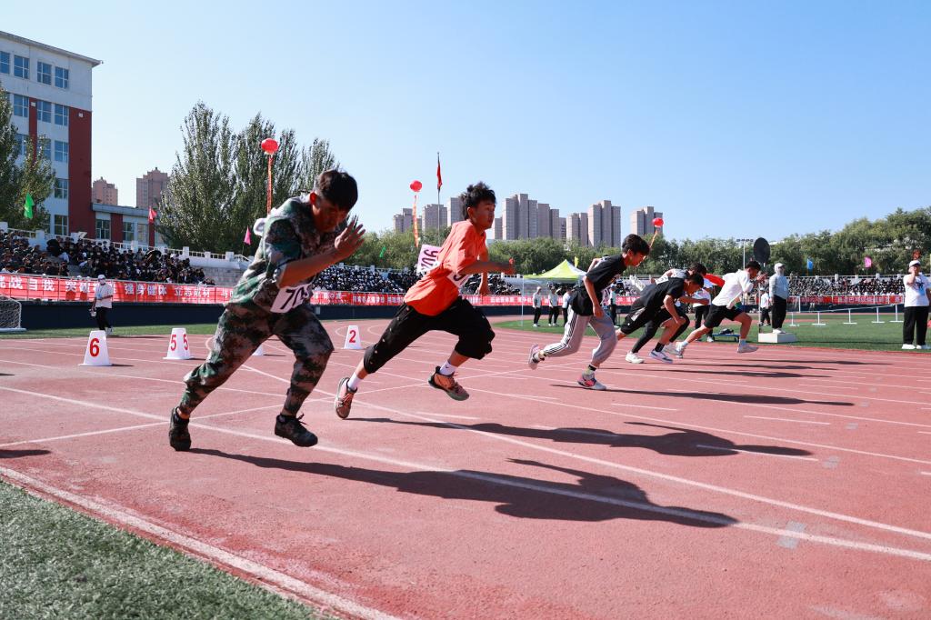 赛场上,比赛紧张激烈,激情澎湃的100米短跑、较量耐力与速度的1500米长跑,考验团队协作能力的接力赛等,如火如荼,运动员们意气风发,团结拼搏、屡创新高。