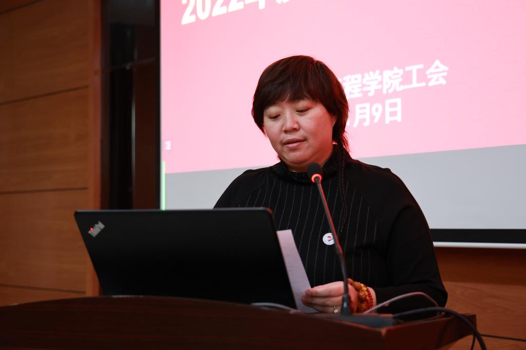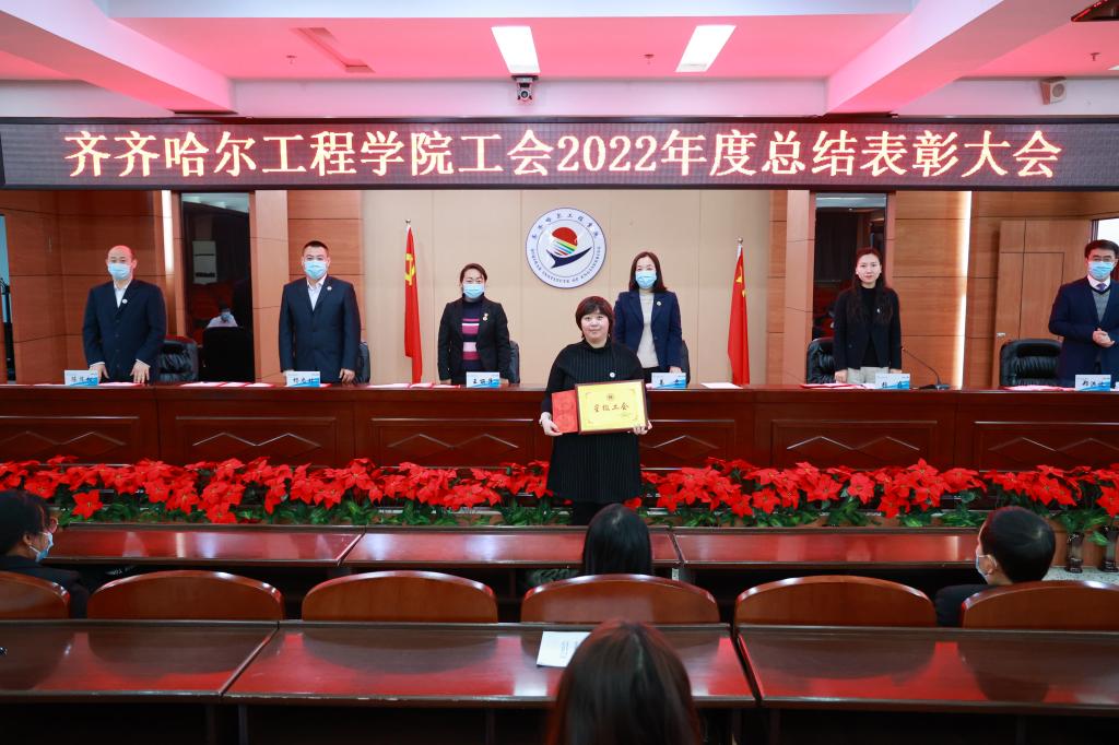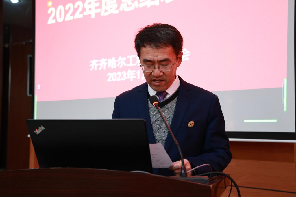 学校工会宣传委员郑洪波宣读《关于表彰齐齐哈尔工程学院工会2022年度星级基层工会和优秀个人的决定》。
