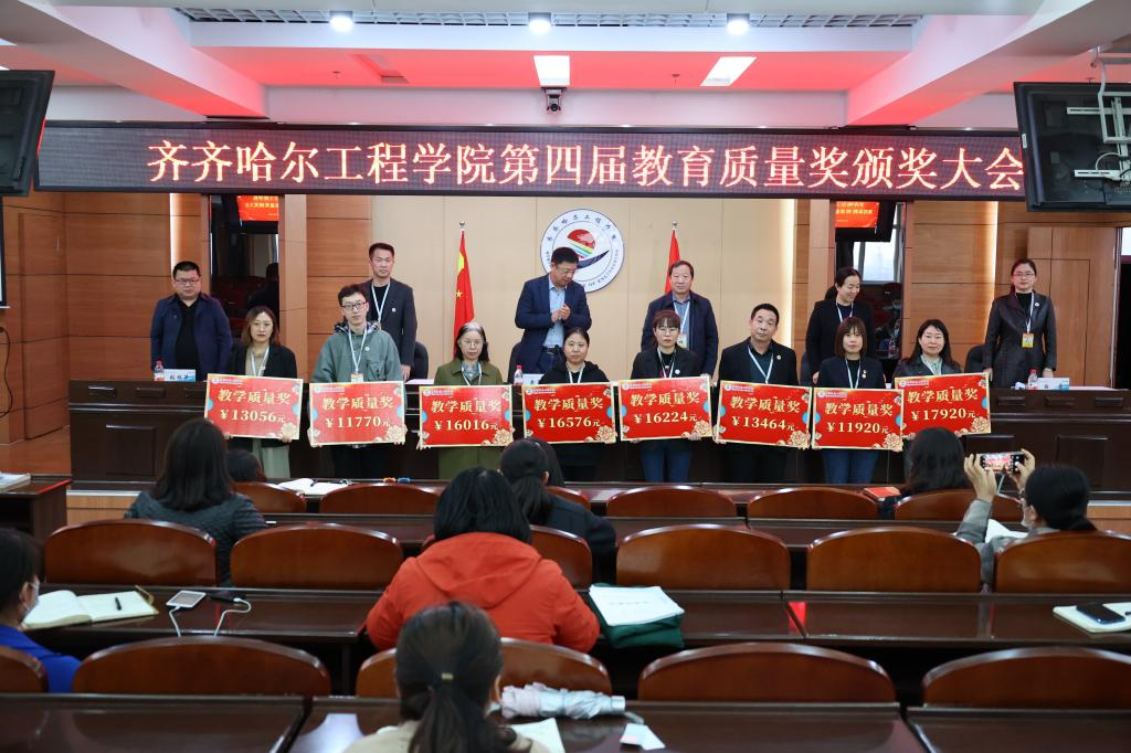 为进一步营造竞教竞育浓厚氛围,充分激发教师落实课改、育人工作内在动力,全力推进我校教育教学质量再上新台阶,4月29日下午,学校第四届教育质量奖颁奖大会在图书馆601报告厅隆重举行,理事长曹勇安、院长曹然彬、党委书记郭伟东、工会主席、总会计师姜岩,副院长张振笋、白雪,全体干部(含专业长)及获奖教工代表在图书馆601报告厅主会场参会,各系教师和其他教职工在图书馆201、301教室分会场参会。