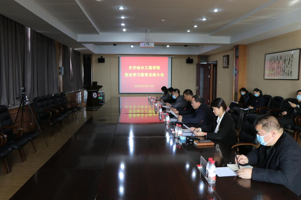 3月12日,党史学习教育总结大会在图书馆603南会议室召开,学校党政领导班子、党史学习教育领导小组办公室主要成员线下参会,全体干部(含专业长)、各系教师党支部书记、学生党支部书记,建华医院党委书记和各党支部书记,以及学生党员代表线上参会。院长、党委副书记曹然彬主持。