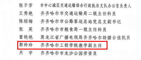 3月6日,齐齐哈尔市总工会发布了“表彰全市五一巾帼奖状(奖章)和五一巾帼标兵岗(标兵)的决定”,我校健康与护理系负责人郭玲玲、全面质量管理办公室主任孟艳辉获得五一巾帼标兵荣誉称号,健康与护理系获得五一巾帼标兵岗荣誉称号。